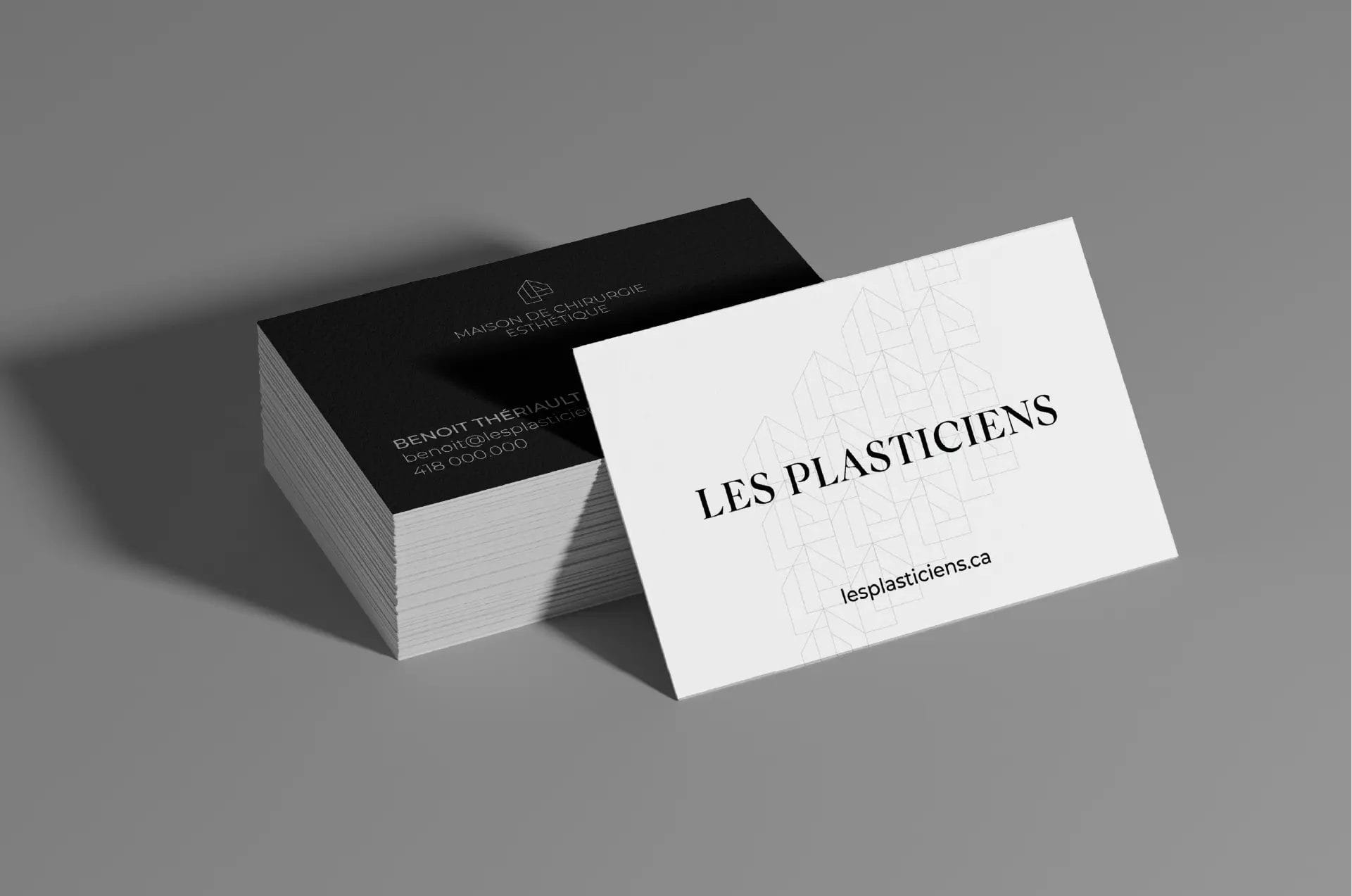Conception et création d’un logo minimaliste et épuré pour Les Plasticiens - Maison de chirurgie esthétique. Le logo devait s’harmoniser à l’architecture classique et contemporaine de la clinique.